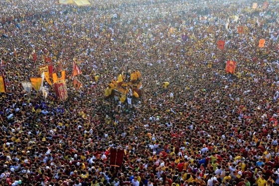 The famous Black Nazarene resides on Quiapo Church. During the celebration, the Black Nazarene would be brought outside the church and will be paraded on a designated route. The parade usually last about 24 whole hours.